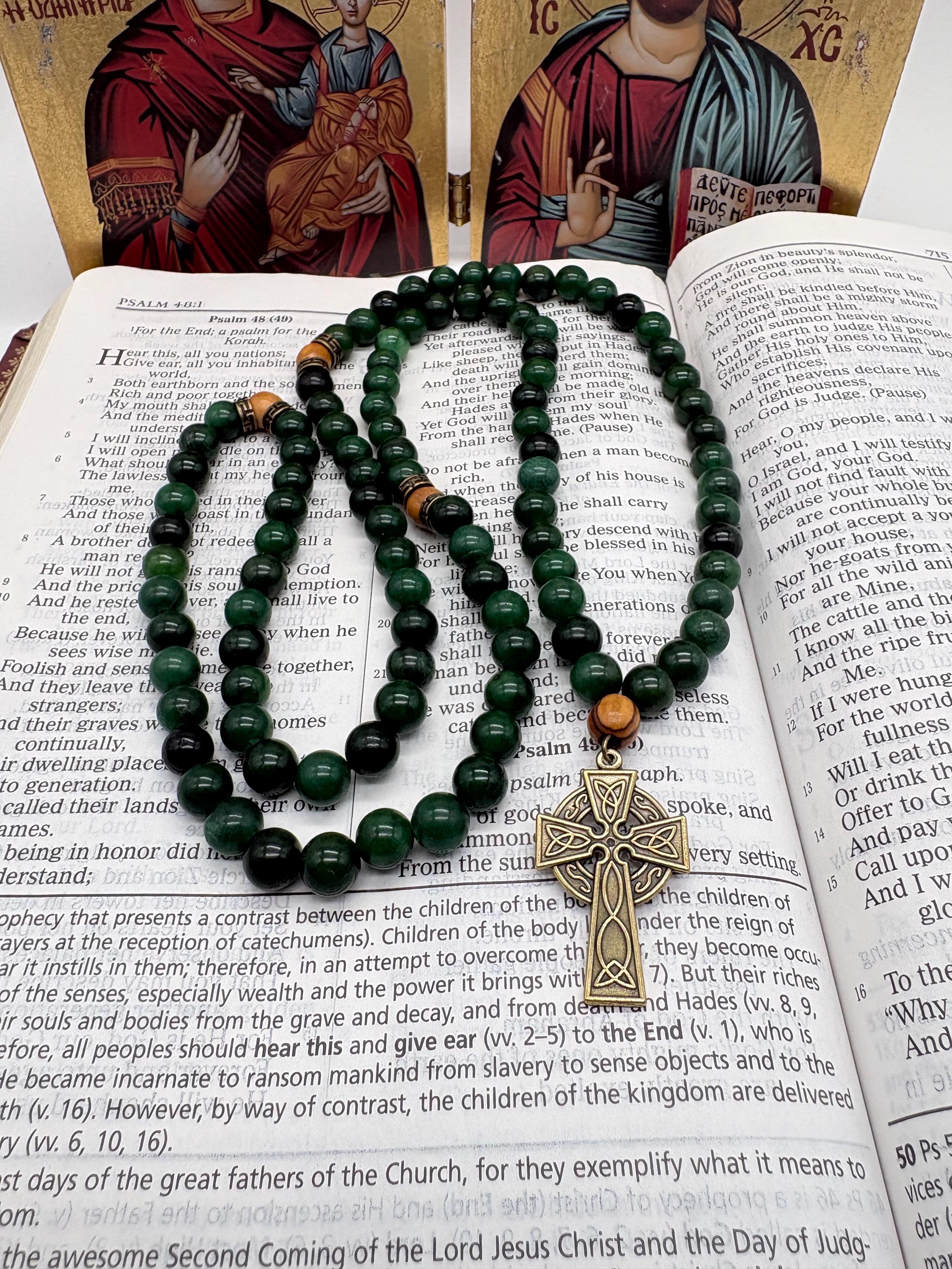 Orthodox Prayer made with 8mm Natural Jade Gemstone beads. Hand tied by us and each bead is prayed over during assembly. Available in three sizes.